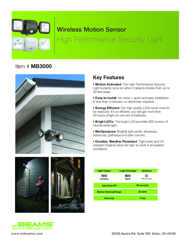 Mr. Beams MB3000 MB3000 Zewnętrzna lampa punktowa LED z czujnikiem ruchu
