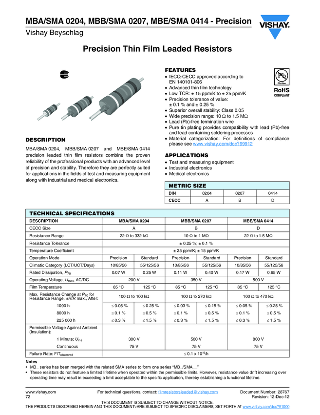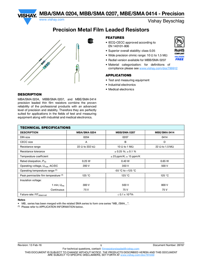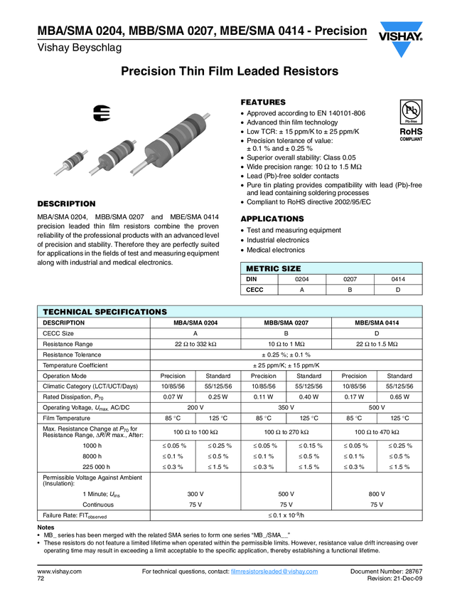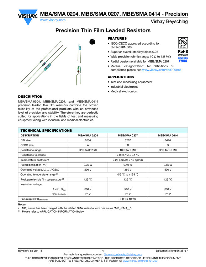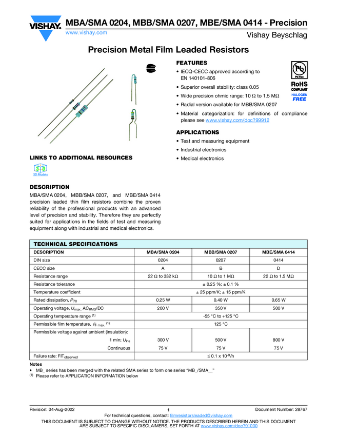 Res Thin Film 8K Ohm 0.1% 2/5W ±15ppm/°C Conformal Axial Thru-Hole Ammo Pack