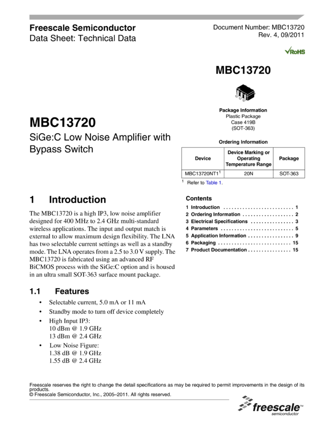 MBC13916 Technical Data Sheet: General Purpose SiGe:C RF Cascode Amplifier