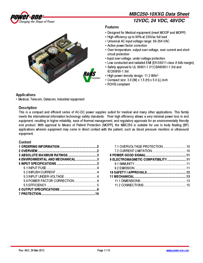 AC/DC Power Supply Single-OUT 12V 10A 228W 19-Pin