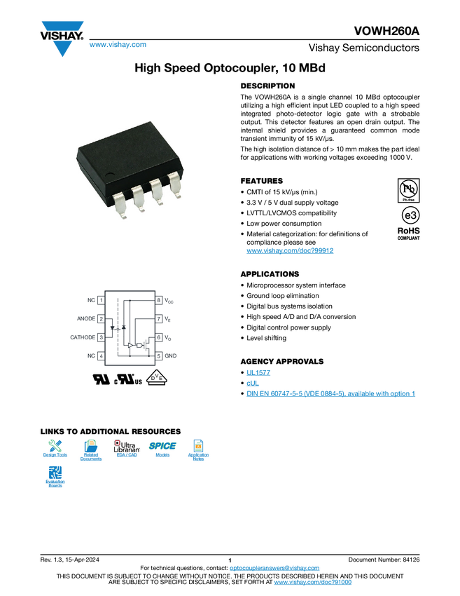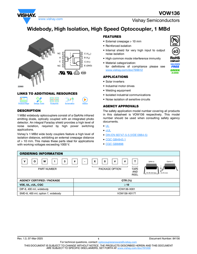 Widebody, High Isolation, High Speed Optocoupler, 1 MBd
