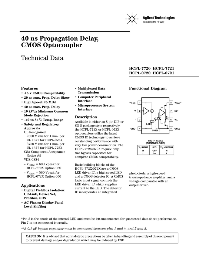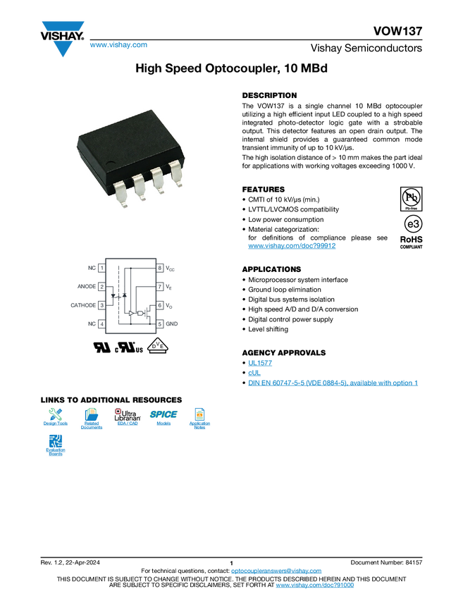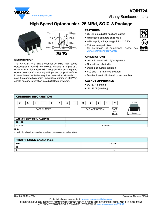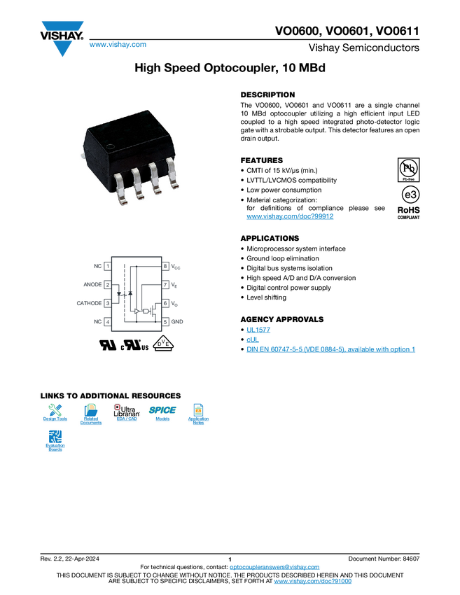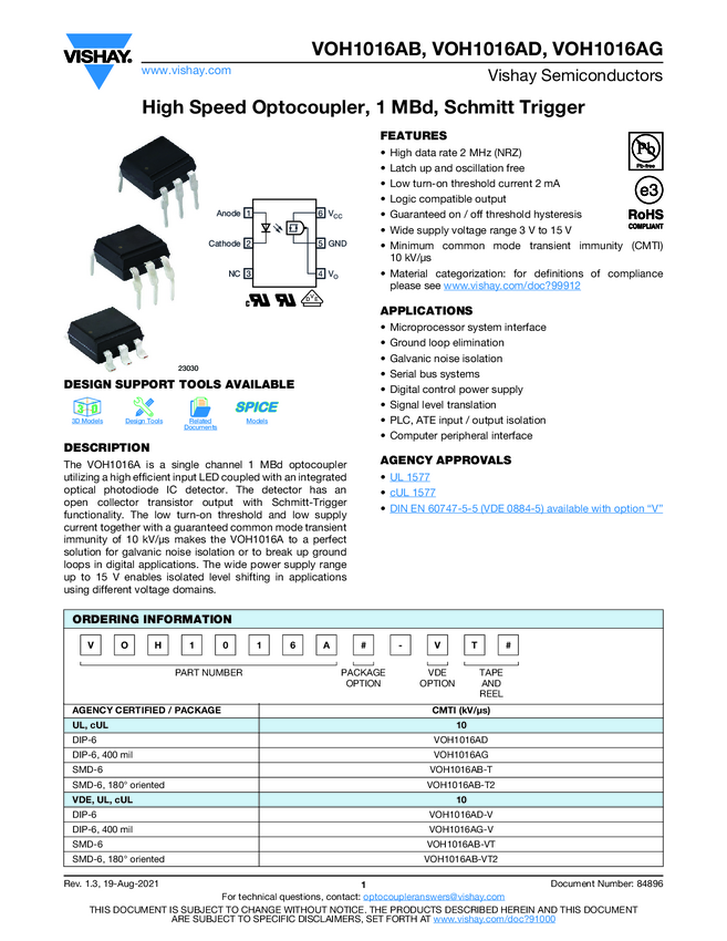 High Speed Optocoupler, 1 MBd, Schmitt Trigger