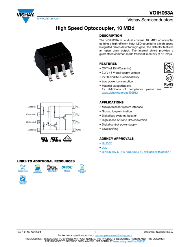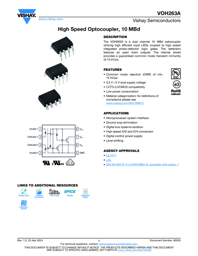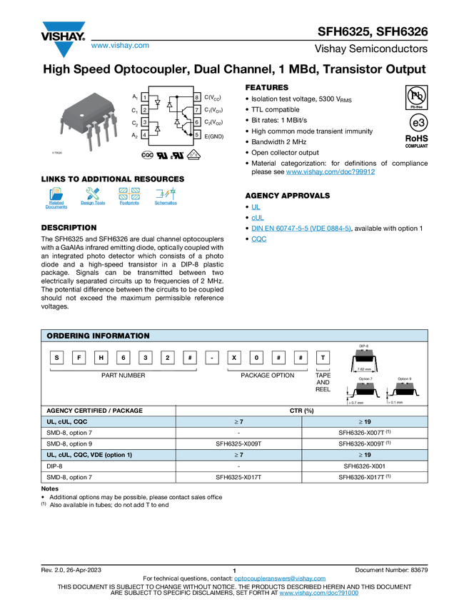 High Speed Optocoupler, 1 MBd, Photodiode With Transistor Output