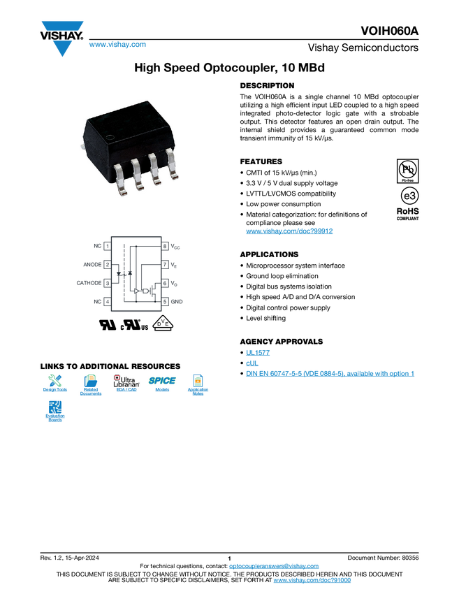 High Speed Optocoupler, 1 MBd, Transistor Output