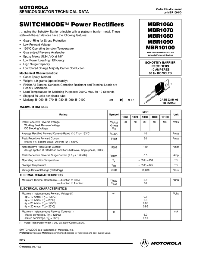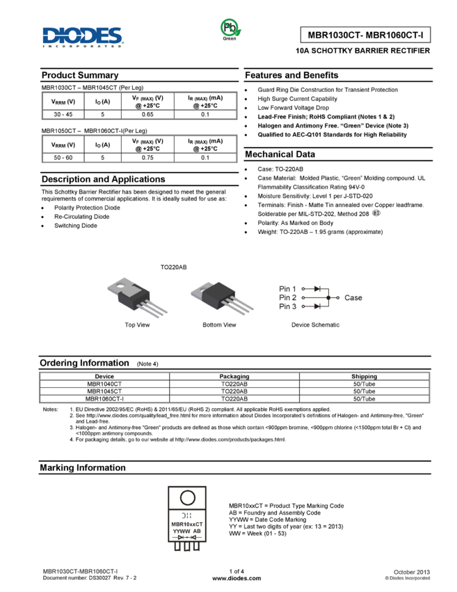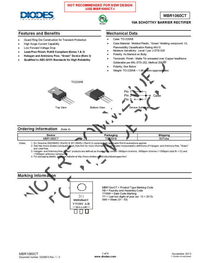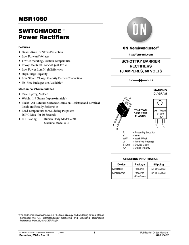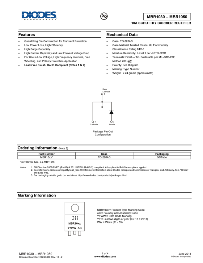 Dioda Schottky'ego Taiwan Semiconductor MBR1060 N/A N/A N/A U(RRM) 60 V