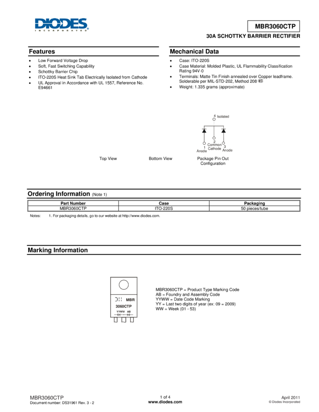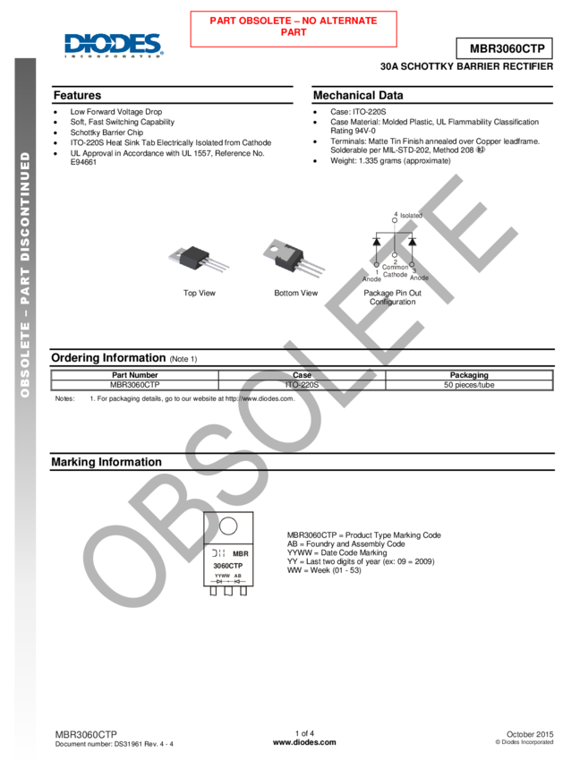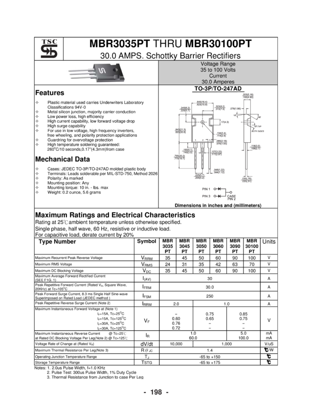 Dioda Schottky'ego Taiwan Semiconductor MBR3060PT N/A N/A N/A U(RRM) 60 V