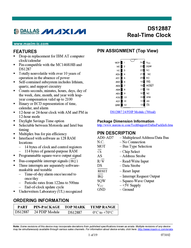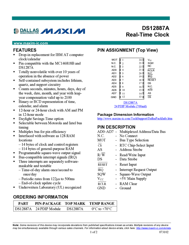 =DS12887A; =DV1287 DALLAS; =DV12887