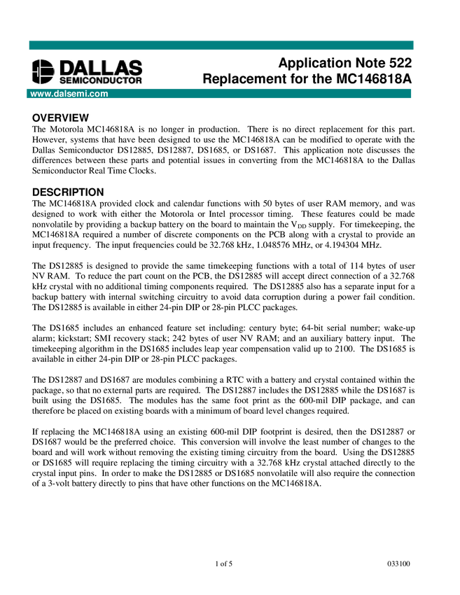 Odpowiednik MC14681A, DS1287, DS1287A, fukcjonalny odpowiednik DS1487, M48T86PC1