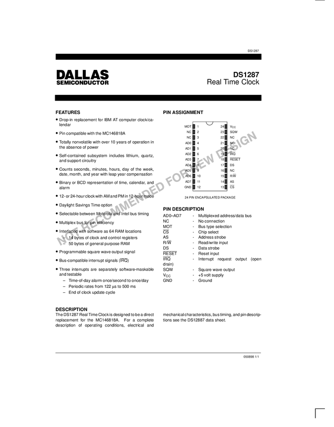 MC146818B REAL TIME CLOCK, odpowiednik DS12287. DS12287A Funkcjonalny odpowiednik DS14287 Pin-compatible D12887, DS12887A with MC146818B & DS1287