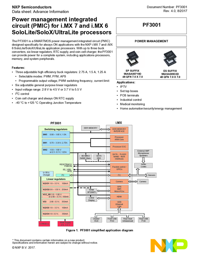 Power Management IC, i.MX 8M, pre-prog, 10 Bit ADC ,4/6 buck, 7 LDO, 5 boost, QFN 56