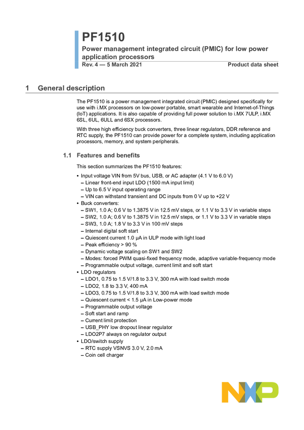 Power Management IC, i.MX7, pre-prog, 3 buck, 6 LDO, QFN 48