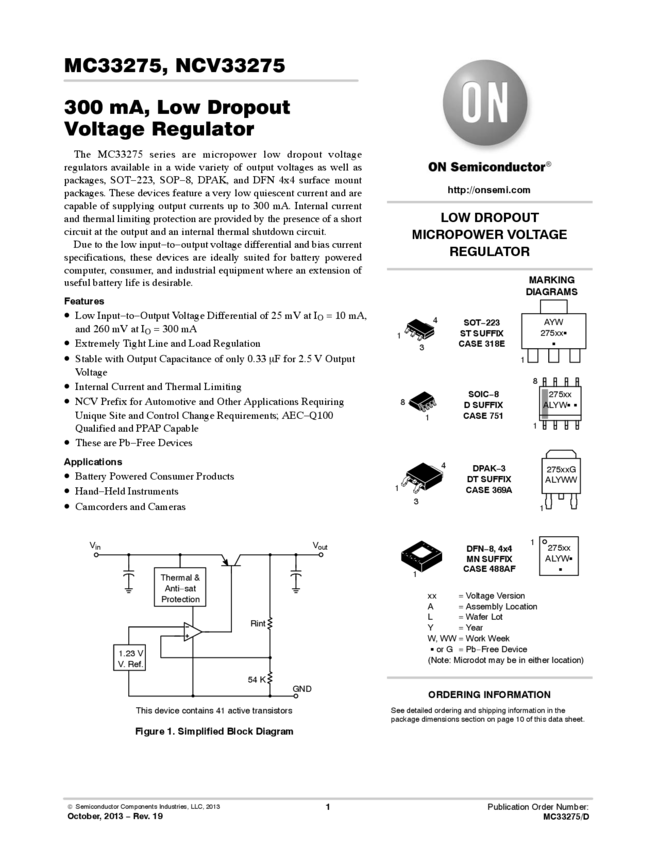 LDO Regulator Pos 2.5V 0.3A 4-Pin(3+Tab) SOT-223 T/R