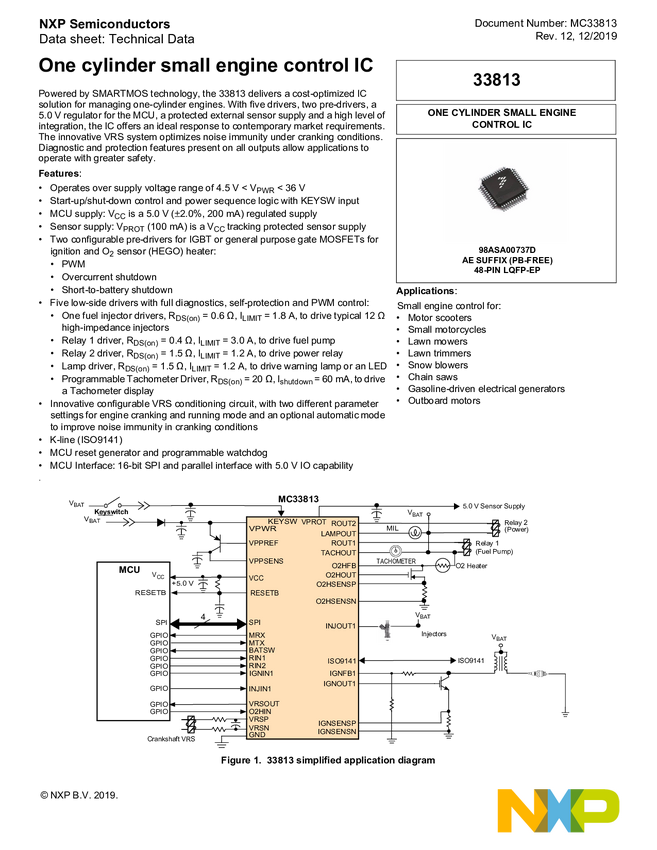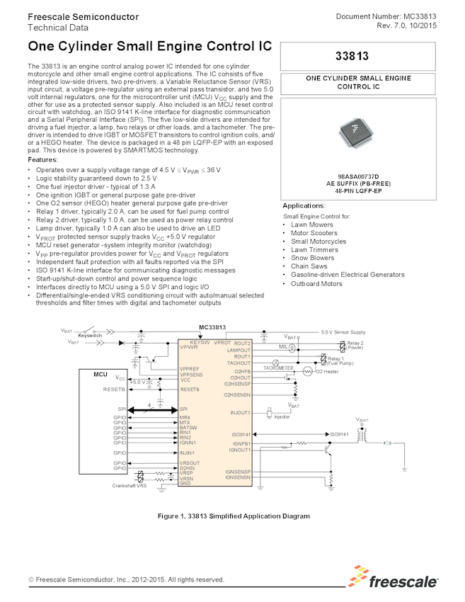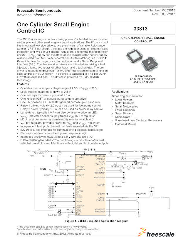 Engine Control IC, One Cylinder, Electronic fuel injection (EFI), VRS, SPI, QFP 48