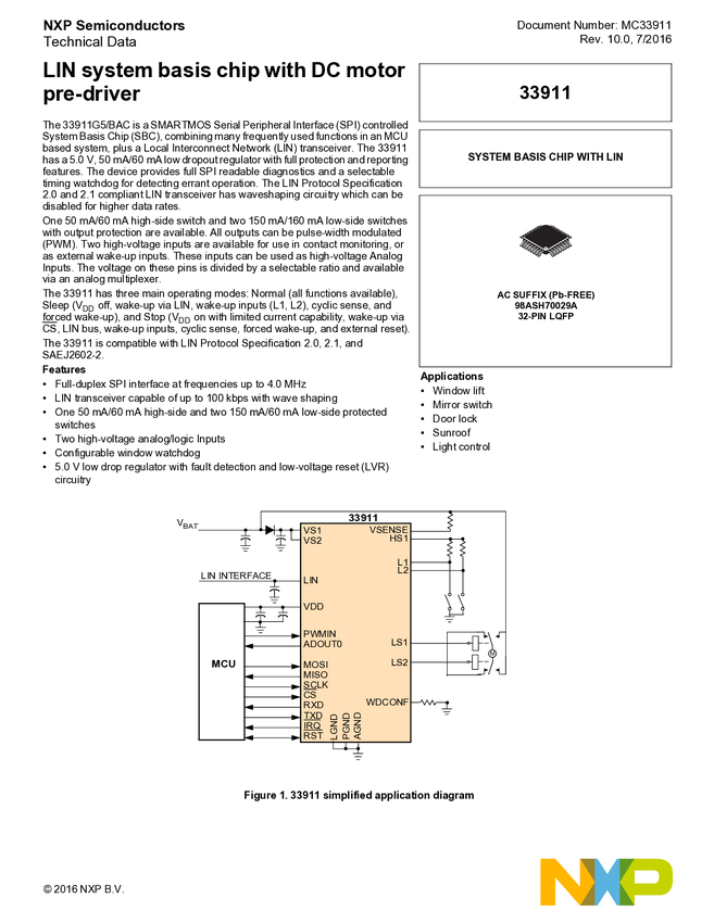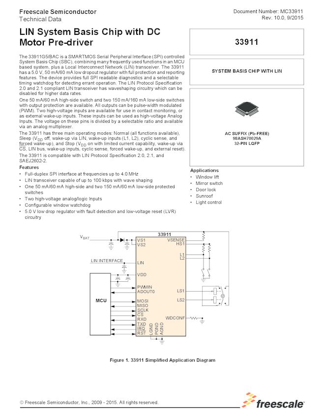MC33911: LIN System Basis Chip with DC Motor Predriver