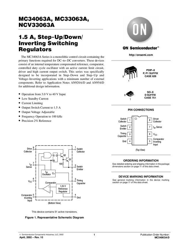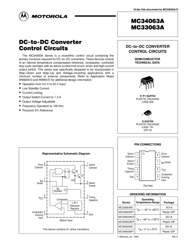 Układ scalony; MC34063AN; przetwornica DC-DC; przełącznik; Uwej: 1,25-40V; Uwyj: 25-40V; 1,5A; DIP8; THT; = XD34063, KA34063, IR3M03A, NJM2360; RoHS