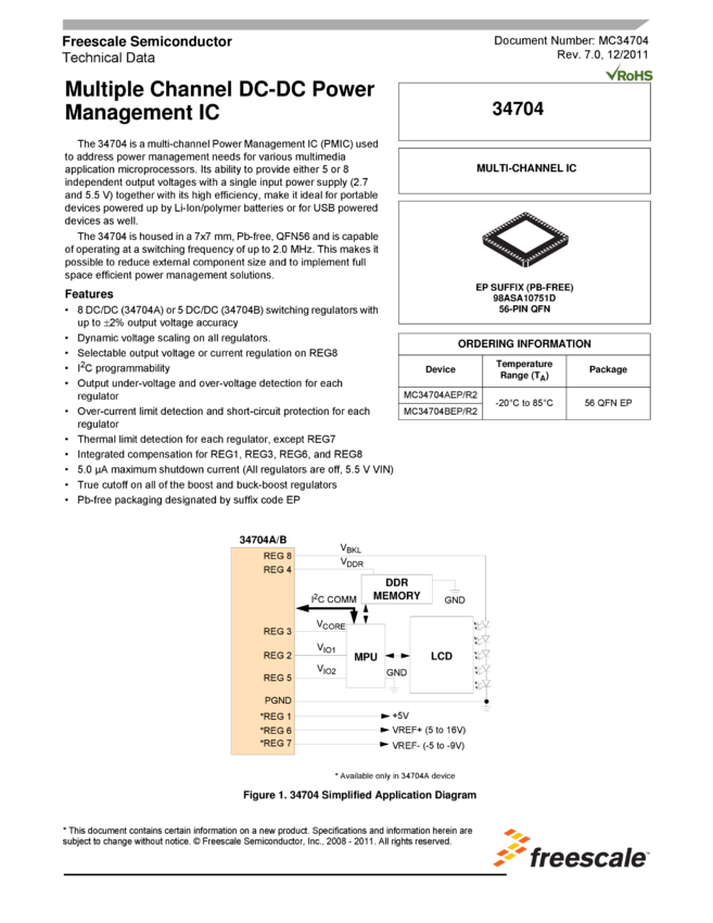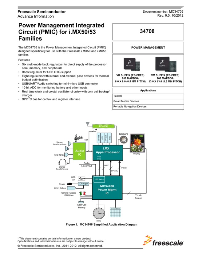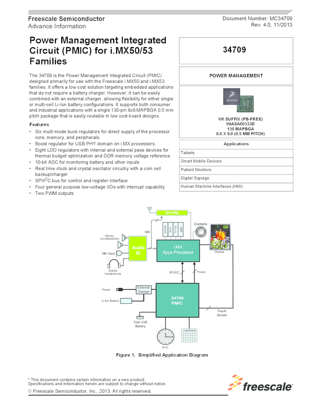 MC34709, Power Management Integrated Circuit (PMIC) for i.MX50/53 Families