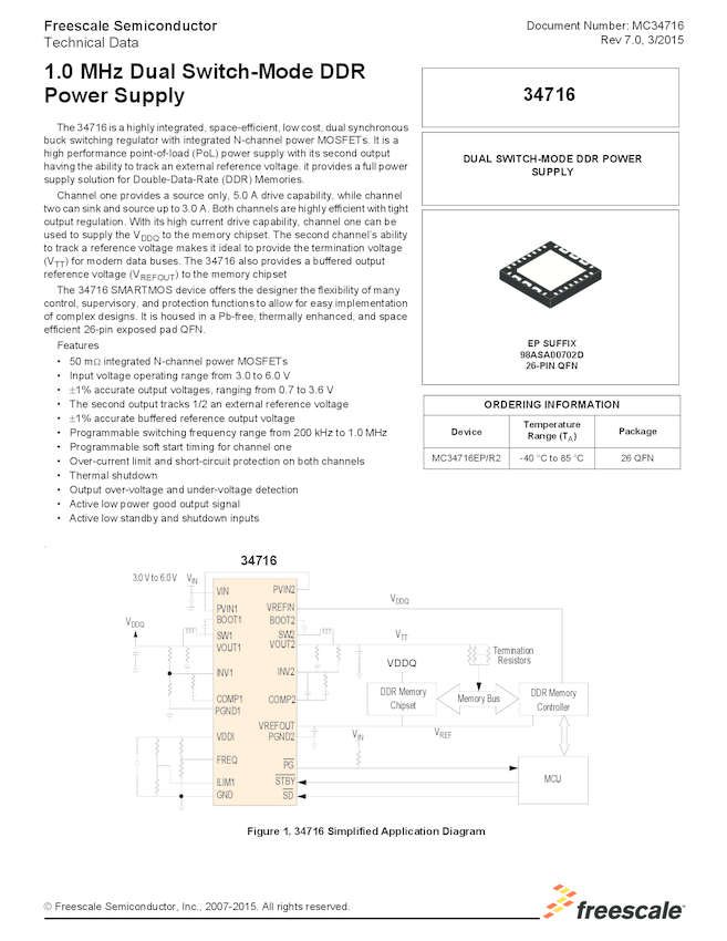 MC34716: 1.0 MHz Dual Switch-Mode DDR Power Supply