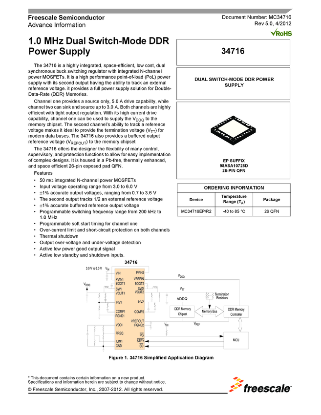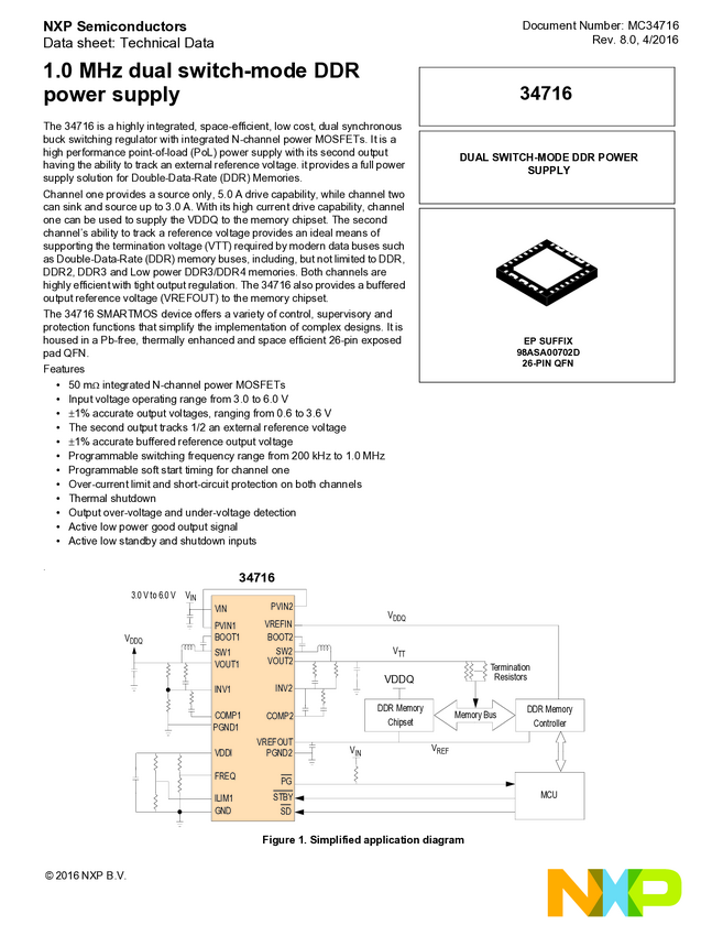 MC34716, 1.0 MHz Dual Switch-Mode DDR Power Supply