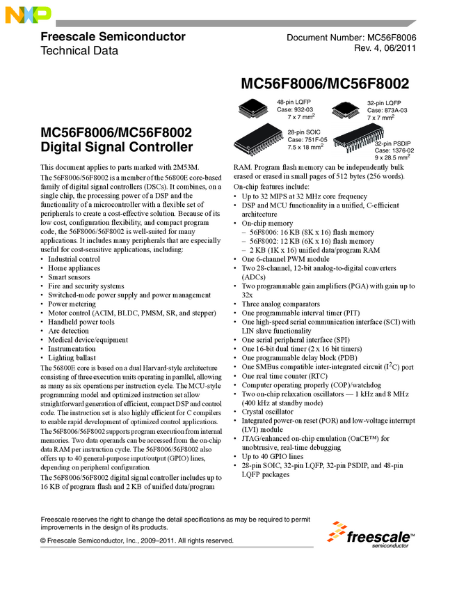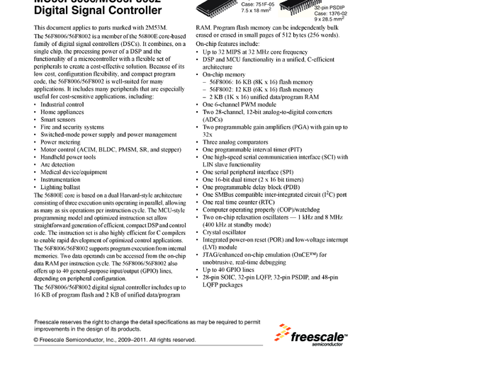MC56F8006 and MCF56F8002 Digital Signal Controllers