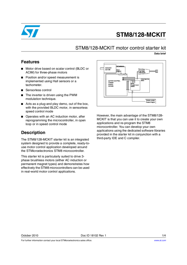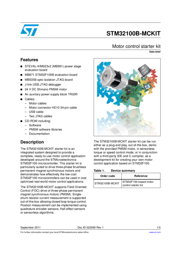 Motor control starter kit for STM32F100 (128KB Flash) Value Line MCUs