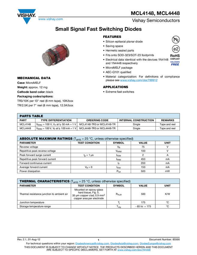 Dioda standardowa Vishay MCL4148-TR N/A N/A
