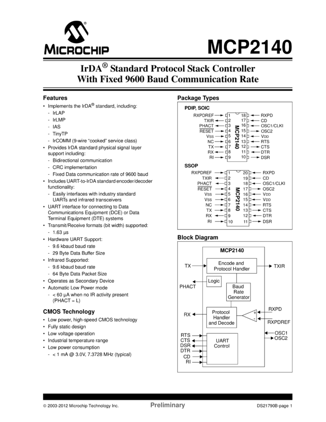 IrDA Standard Protocol Stack Controller with Fixed 9600 Baud Communication Rate (10/10/2011)