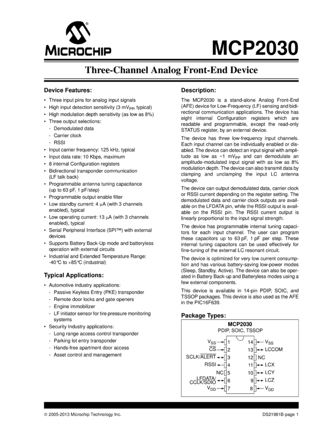 MCP2030 Three-Channel Analog Front-End Device (02/05/2013)
