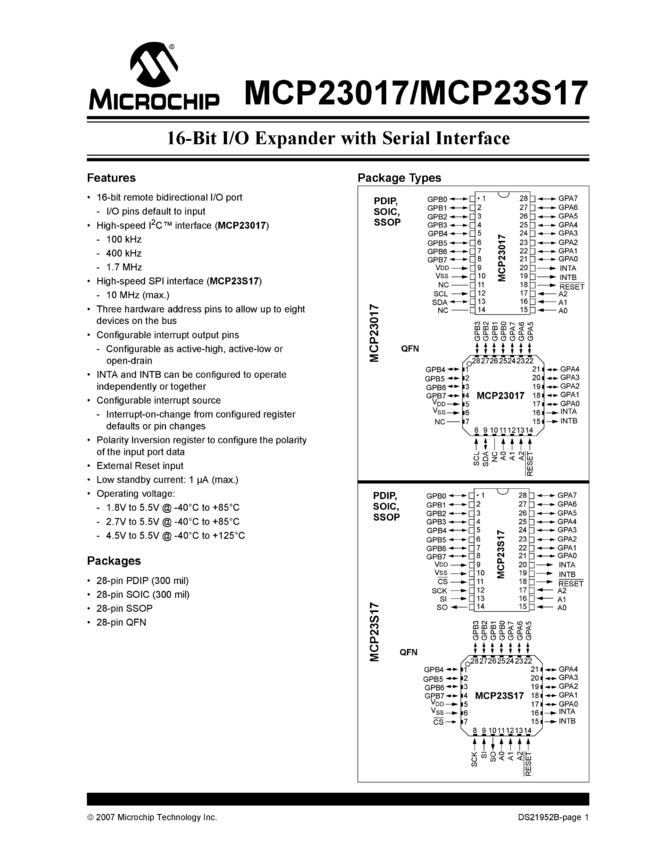 MCP23017/MCP23S17 Data Sheet (02/06/2007)