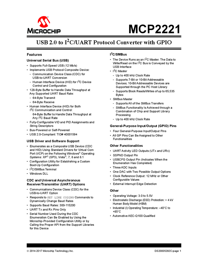 MCP2221A - USB 2.0 to I2C/UART Protocol Converter with GPIO