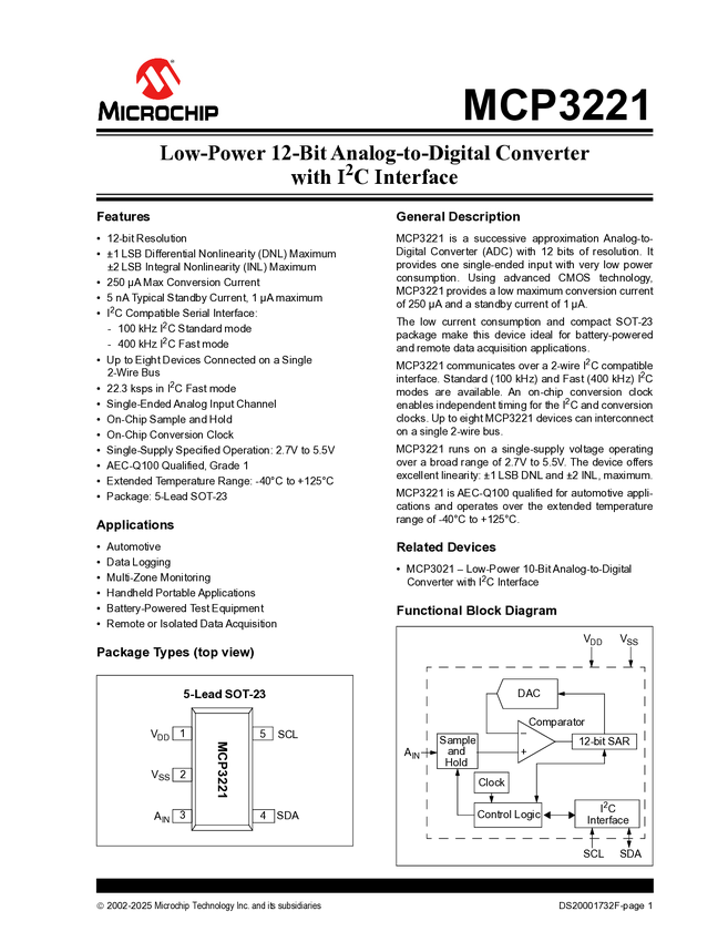 MCP3221 Datasheet (02/05/2013)