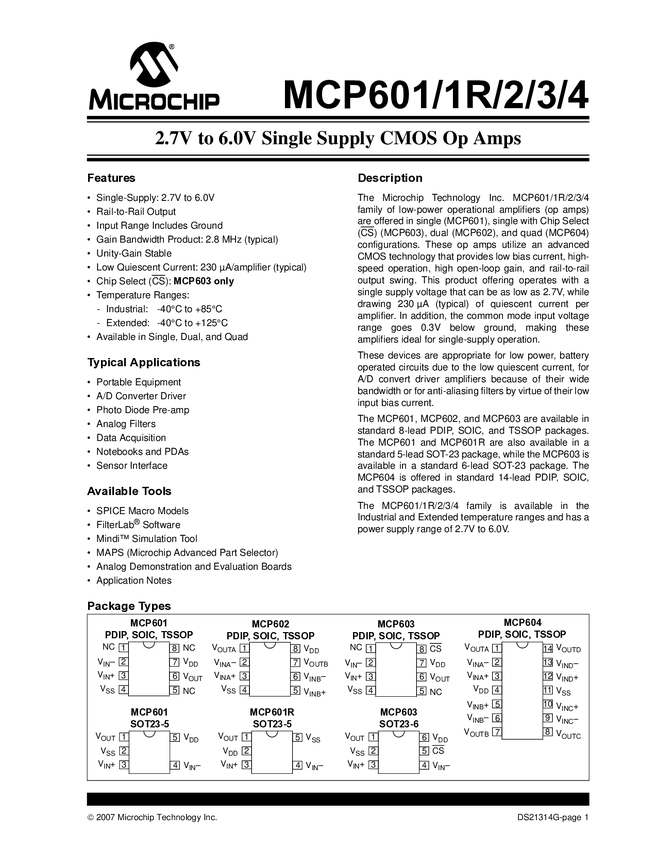 2.7V to 6.0V Single Supply CMOS Op Amps