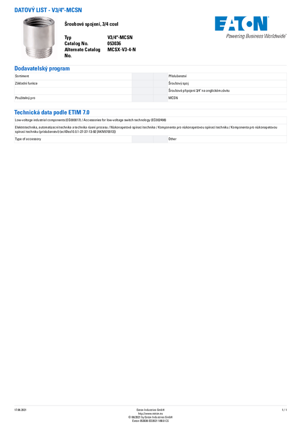 Element śrubowy złącza Eaton V3/4"-MCSN 1 szt.