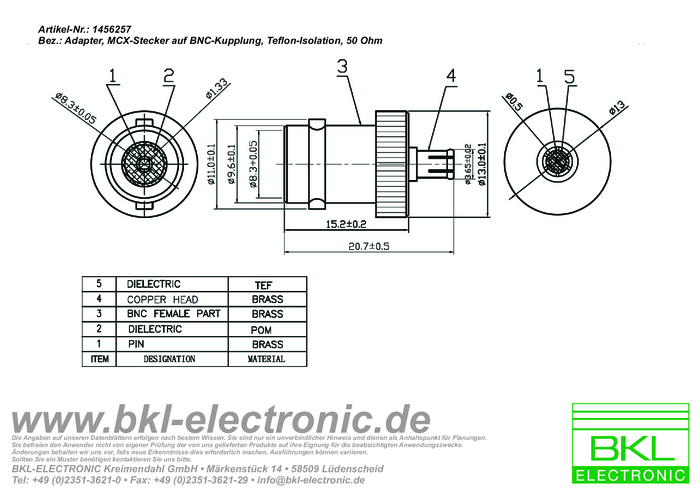 Adapter MCX BKL Electronic 0416316 złącze męskie MCX - złącze żeńskie BNC 1 szt.