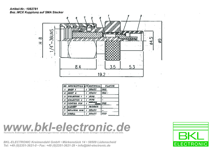 Adapter MCX BKL Electronic 0409064 złącze żeńskie MCX - złącze męskie SMA 1 szt.