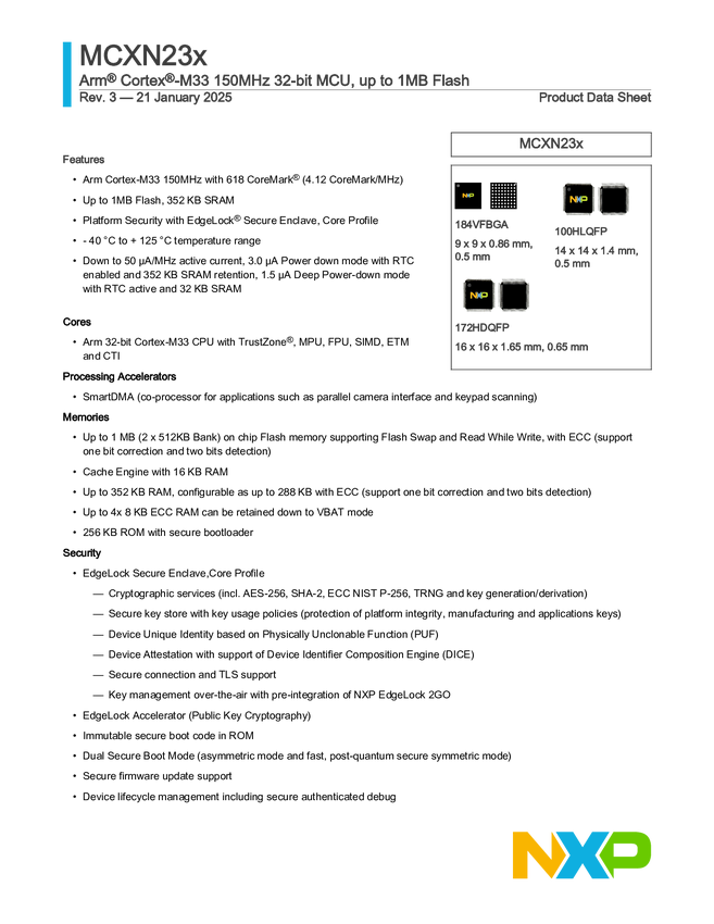 MCX N23x Highly Integrated MCUs with On-Chip Accelerators, Intelligent Peripherals and Advanced Security