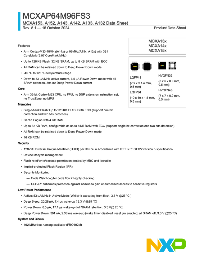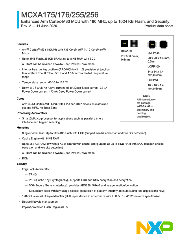 MCX A25 Enhanced Mainstream MCU Arm® Cortex® M33 with 180 MHz, Rich Serial Peripherals and Security
