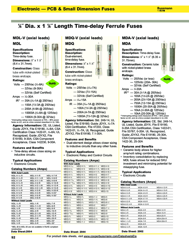 Fuse Miniature 30A 250V Slow Blow 2-Pin Axial Through Hole