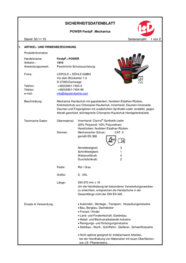 FerdyF. Mechanics POWER 1910-8 Sztuczna skóra Clarino® Rękawice montażowe Rozmiar rękawic: 8, M CAT II 1 par(a)
