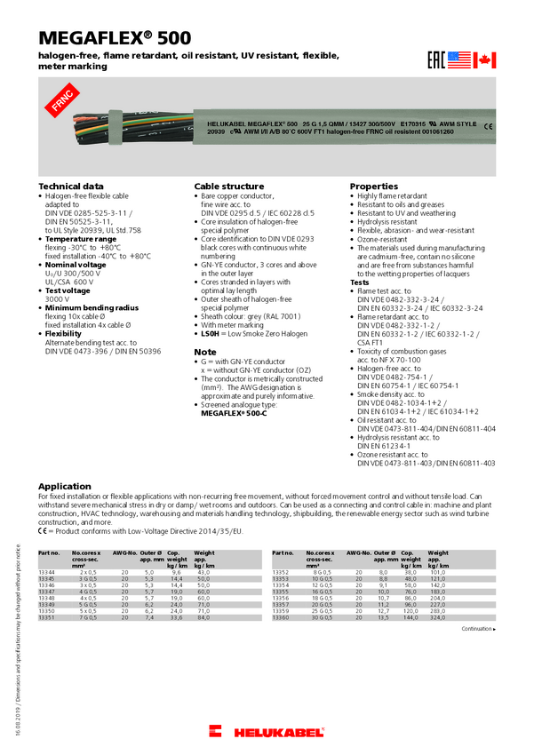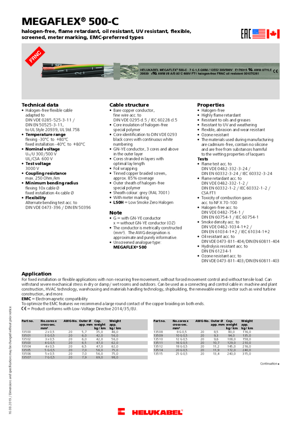 Helukabel 13519-500 Przewód sterowniczy MEGAFLEX® 500, 4 G 0.75 mm², 500 m