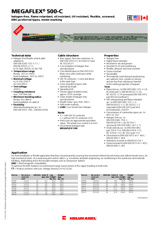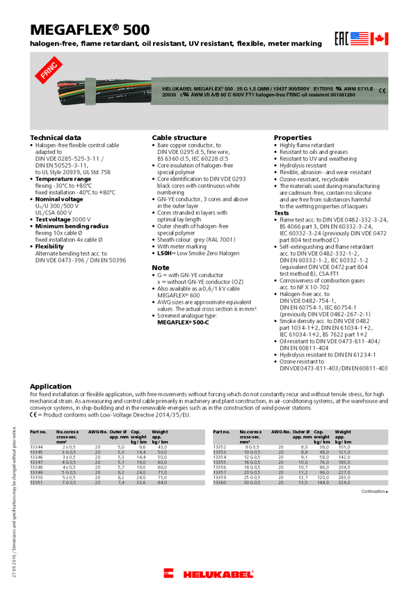 Helukabel 13416-500 Przewód sterowniczy MEGAFLEX® 500, 3 x 1.5 mm², 500 m