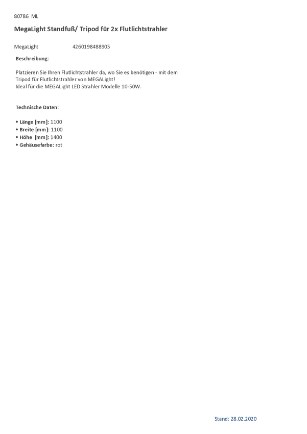 Reflektor roboczy LED MegaLight Floodlight Stand 80781 20 W 1600 lm biały