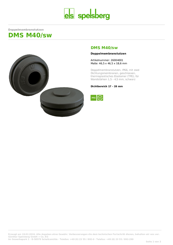 Spelsberg 26004001 Podwójne złącze membranowe odporna na promieniowanie UV, bezhalogenowa czarny 1 szt.