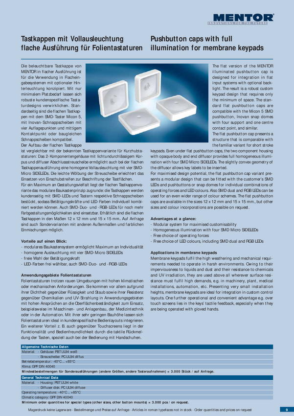 Nakładka na przycisk Mentor 2271.6004, biały, (D x S x W) 12 x 12 x 5.2 mm, 1 szt.