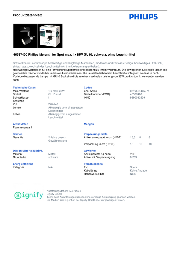 Lampa punktowa, sufitowa Philips Meranti 8719514465398 230 V GU10