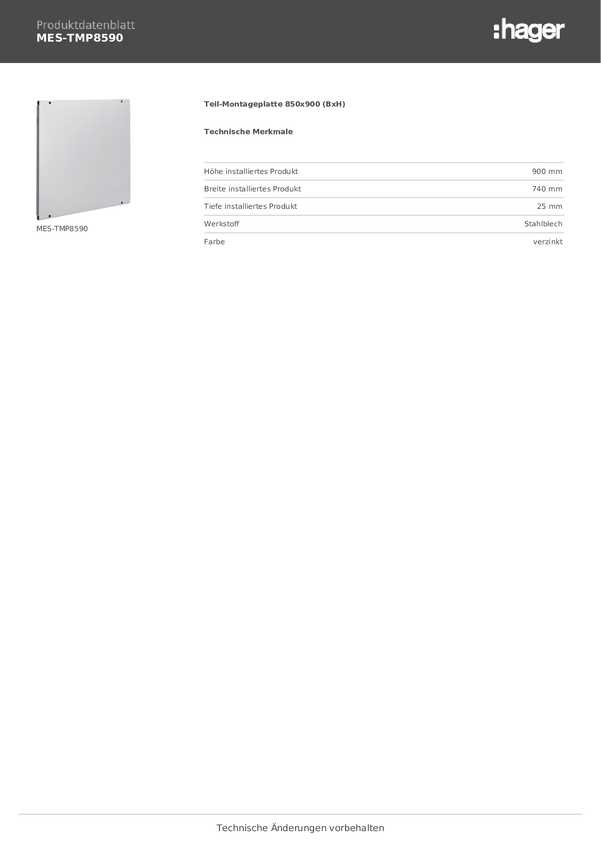 Hager MES-TMP8590 Płyta montażowa stal 1 szt.