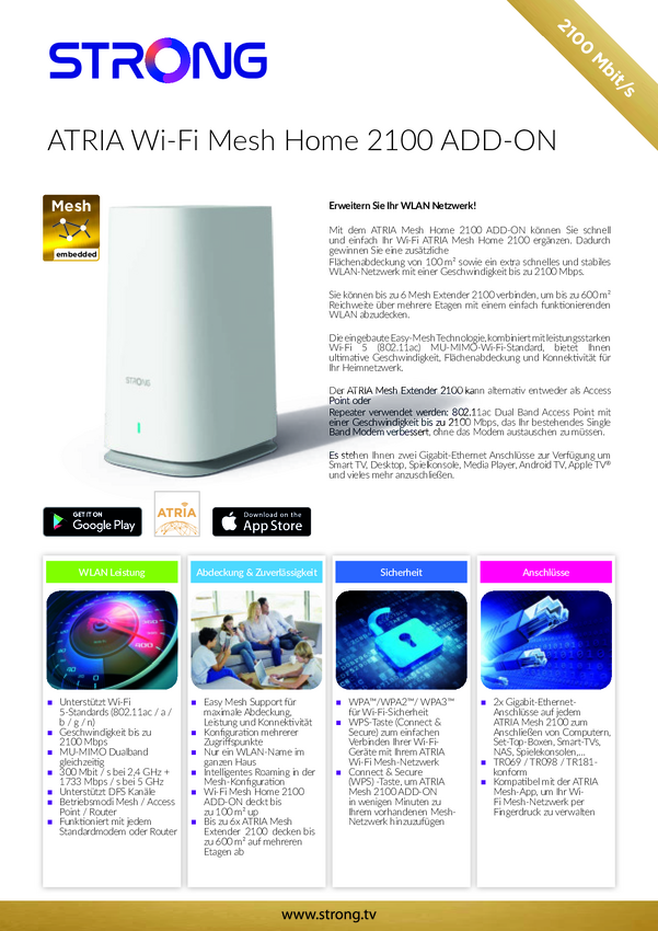 Sieć Mesh Strong MESH2100ADD-ON, 2100 MBit/s LAN (10/100/1000 MBit/s)