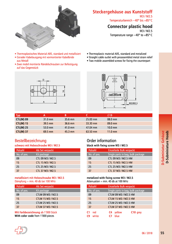 Deltron Connectors Deltron CTLM09M2.5 Obudowa złącza D-SUB Ilość styków: 9 tworzywo sztuczne, metalizowane 180 ° metal 1
