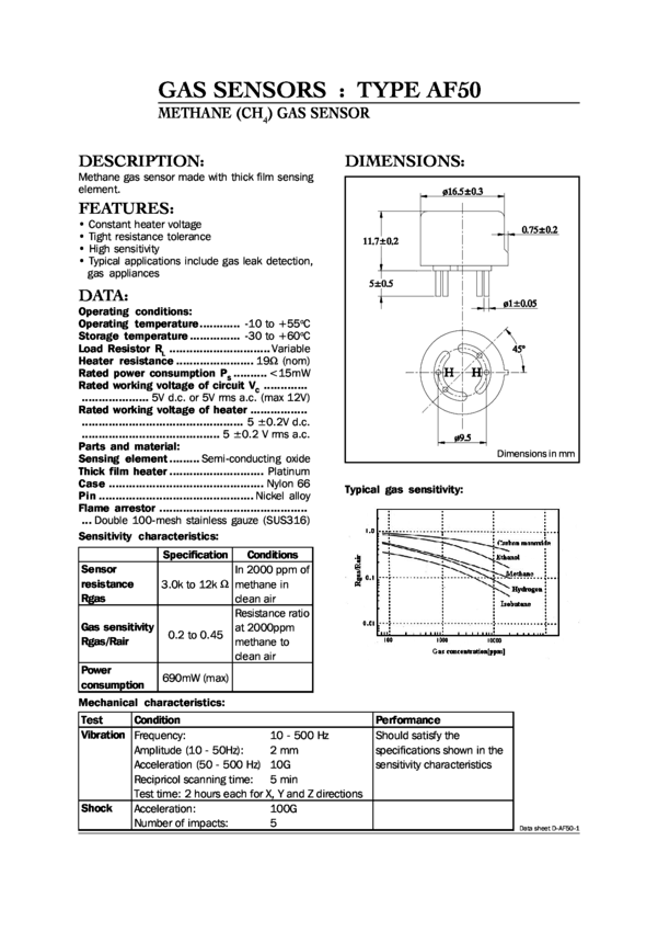 GAZY: METAN PROPAN BUTAN-ZWIĘKSZONA CZUŁOŚĆ NA METAN Uwaga: jest to sam czujnik, a nie gotowe urządzenie