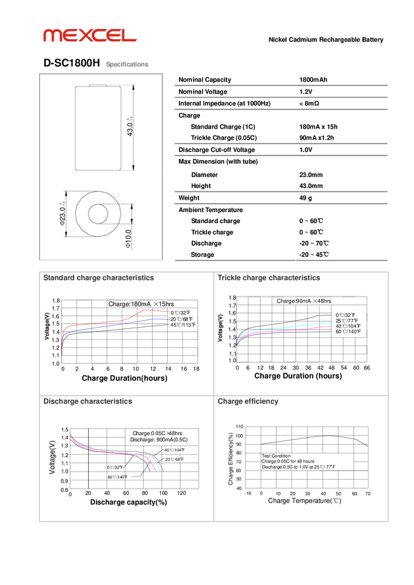 Pakiet akumulatorów Sub-C, NiCd Mexcel NS1800SCH, Ilość ogniw: 2, 2.4 V, 1800, Możliwa wysoka temperatura, wtyczka