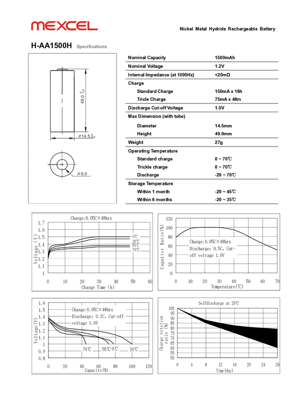 Pakiet akumulatorów AA, NiMH Mexcel NS1500AAHT, Ilość ogniw: 4, 4.8 V, 1500, Możliwa wysoka temperatura, wtyczka